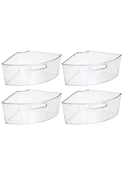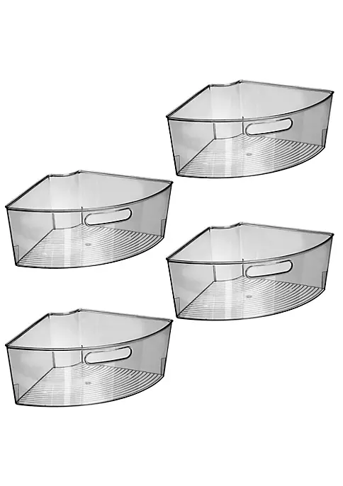 CIRCULAR STORAGE: Maximize space in turntable lazy-susan cabinets; Four ΓΒΌ wedge bins create a complete circle.