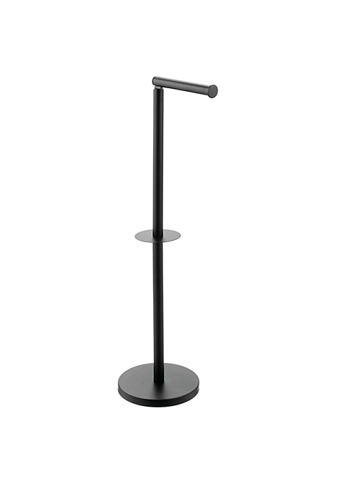 FUNCTIONAL STORAGE: Free-standing toilet paper holder stores and dispenses toilet paper.