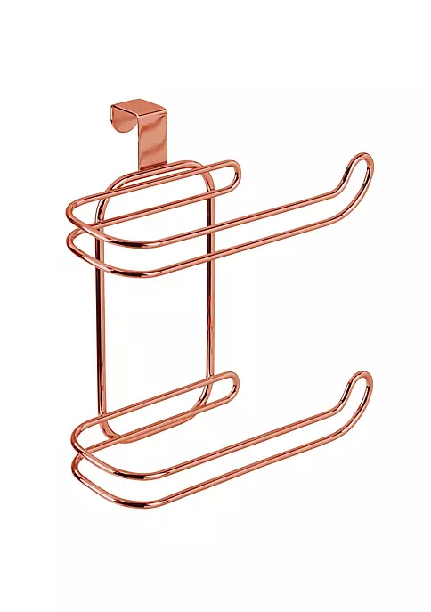 Compact, space-saving toilet paper holder stores 3 rolls of toilet tissue.