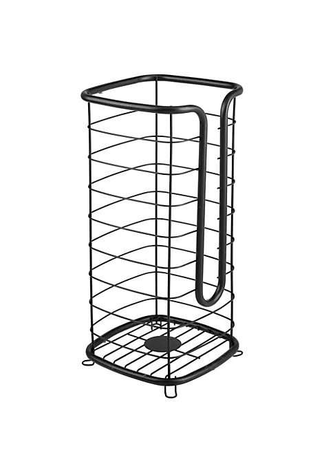 Toilet paper holder provides instant storage for 3 rolls of extra toilet paper.