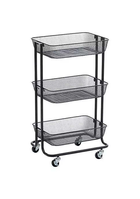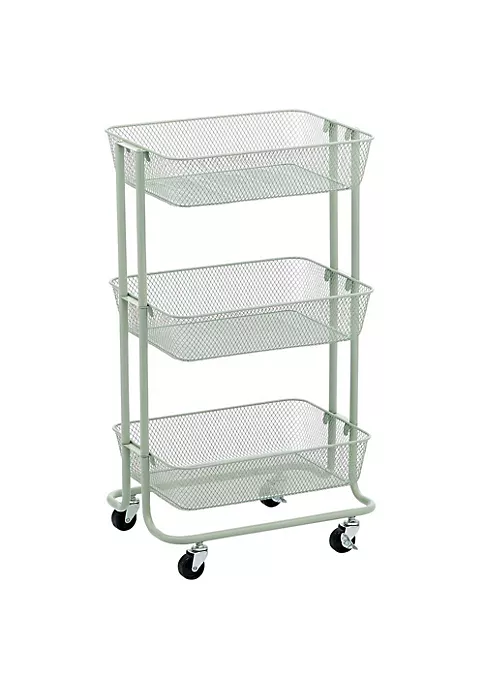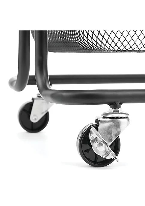 Storage cart sits on 4 durable caster wheels.