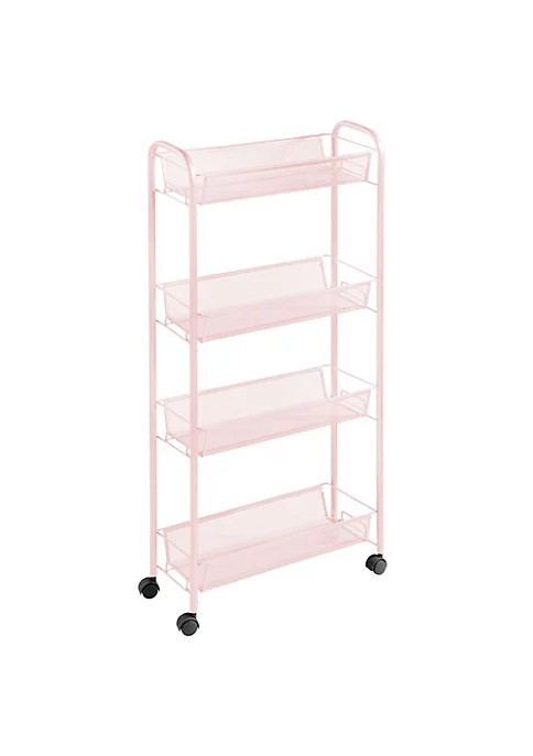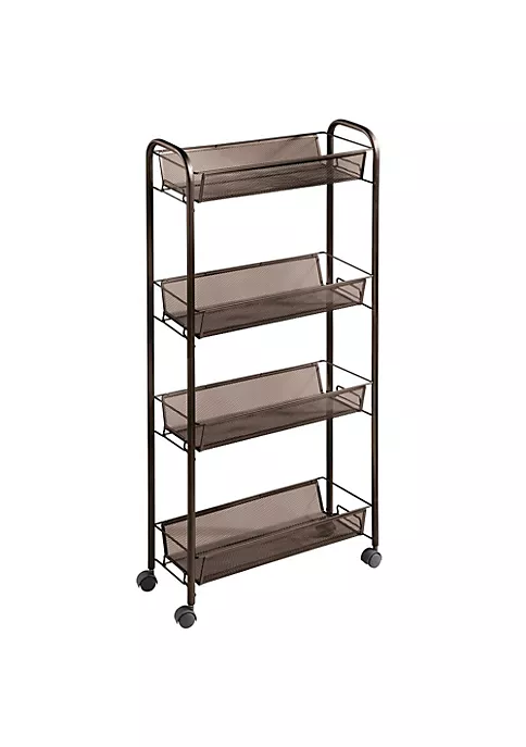 Made of strong steel wire mesh with a durable rust-resistant finish; Easy-glide caster wheels are made of durable plastic.