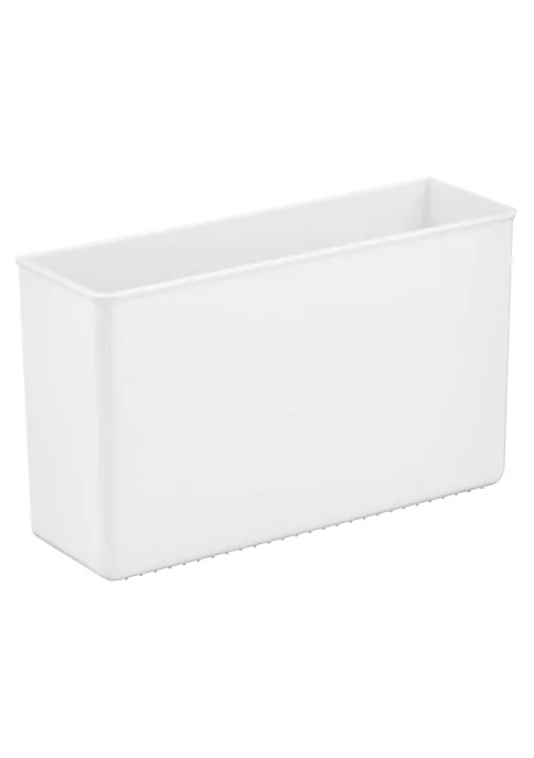 INSTANT STORAGE: This storage and organization container allows you to create custom kitchen storage.STRONG-HOLD: Self-adhesive backing maintains a super strong hold that helps the organizer stay put.FUNCTIONAL & VERSATILE: This wide bin is perfect for organizing your kitchen.QUALITY CONSTRUCTION: Made of durable shatter-resistant plastic with self-adhesive tape.EASY CARE: Clean with mild soap and water; Do not place in dishwasher.THOUGHTFULLY SIZED: Measures 3.5″ x 11″ x 6.5″ high; Holds up to 6 lbs. each.