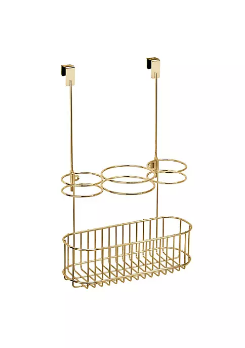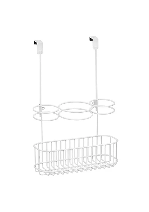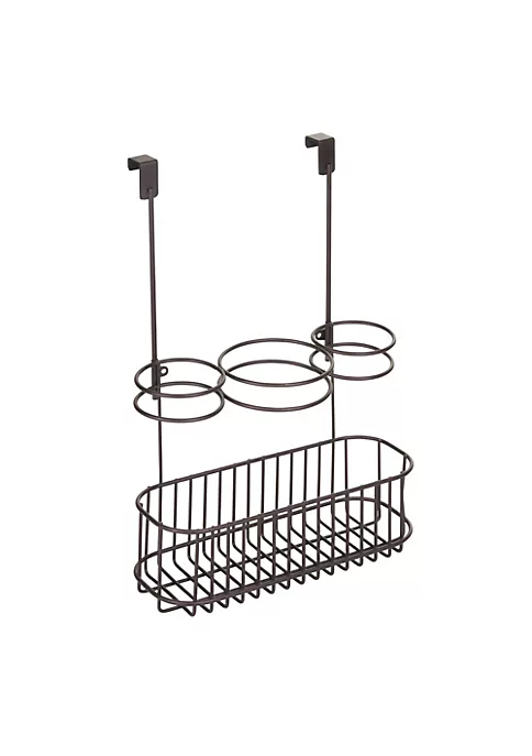 HAIR CARE STORAGE: This over the cabinet door organizer keeps all your hair care tools separated, organized and easy to find.STORES HOT TOOLS: Three compartments hold hair dryers, flat irons, curling irons and brushes, while the basket helps to corral cords.EASY INSTALLATION: Easily installs by hanging over cabinet doors for instant storage – hang on inside or outside of doors.QUALITY CONSTRUCTION: Made of strong steel wire with a durable finish; Designed for use in moisture-rich bathroom environments.EASY CARE: Clean with damp cloth.THOUGHTFULLY SIZED: Measures 10.6″ x 5″ x 10″ high; Fits over cabinet doors up to .75 inches / 1.9cm thick.