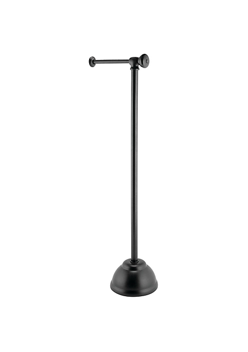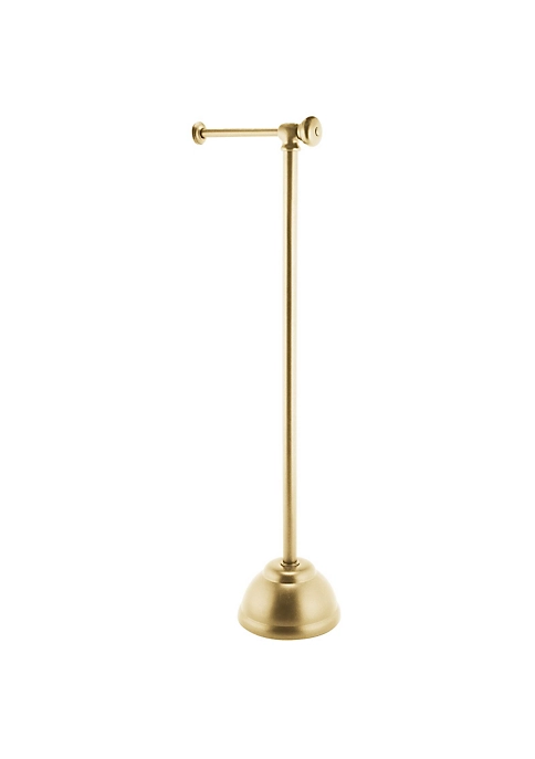 Free Standing toilet paper holder dispenses 1 roll of toilet tissue.