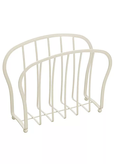 Freestanding modern magazine holder stores and organizes reading materials in one convenient place.