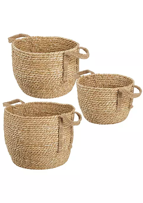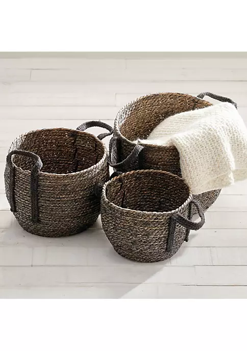 Integrated jute rope handles making them easy to pull on and off of shelves.