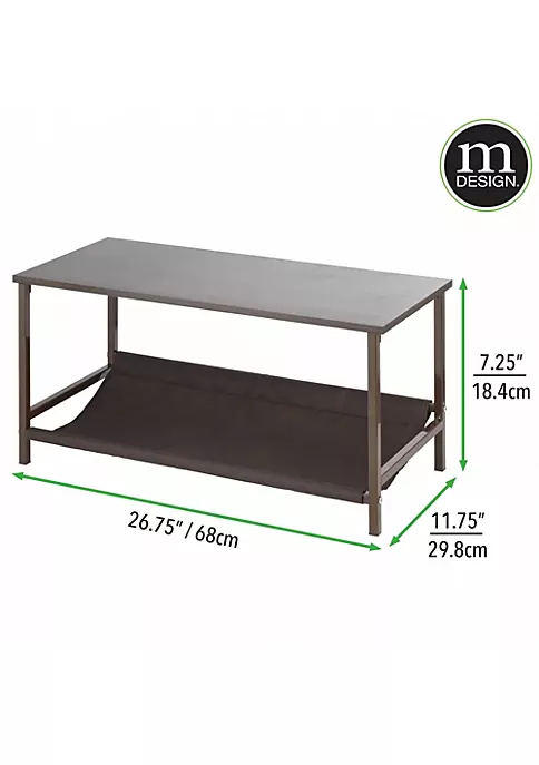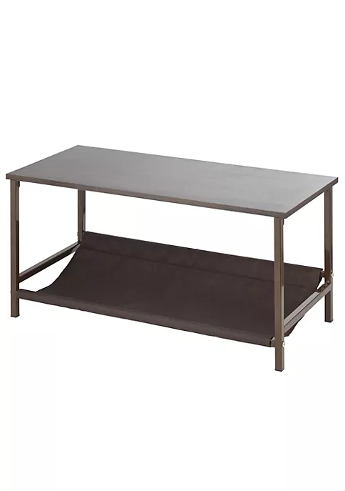 Storage bench with wood top and fabric shelf
