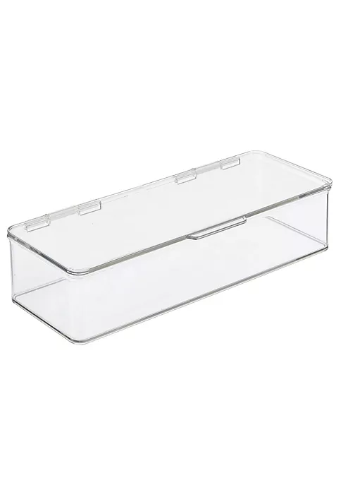Hinged lid keeps stored items neatly tucked away and free of dust and debris