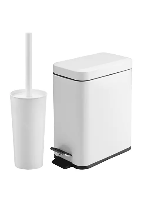 THOUGHTFULLY SIZED: Trash Can Measures 11.25″ x 5.5″ x 11.75″ high; Bowl Brush Measures 4.5″ diameter x 17″ high.