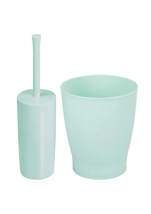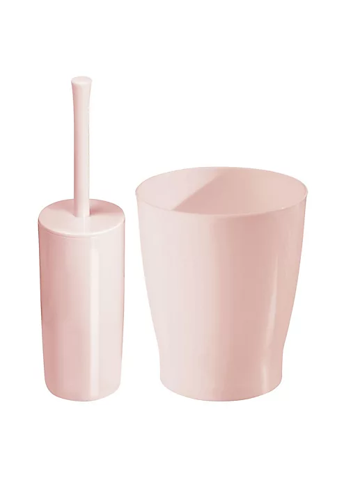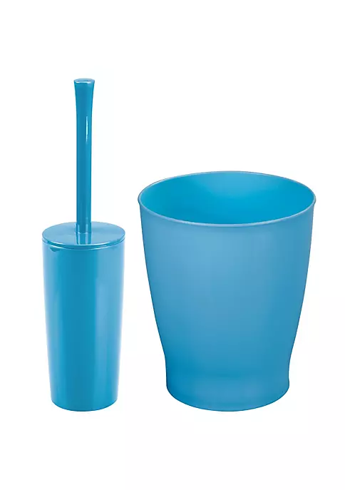 2 Piece Set; Includes one toilet bowl brush and one matching round waste can.