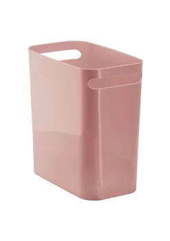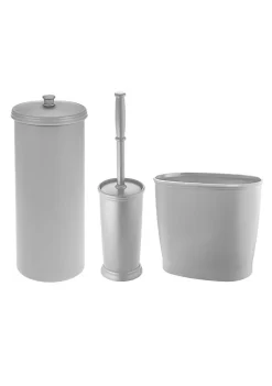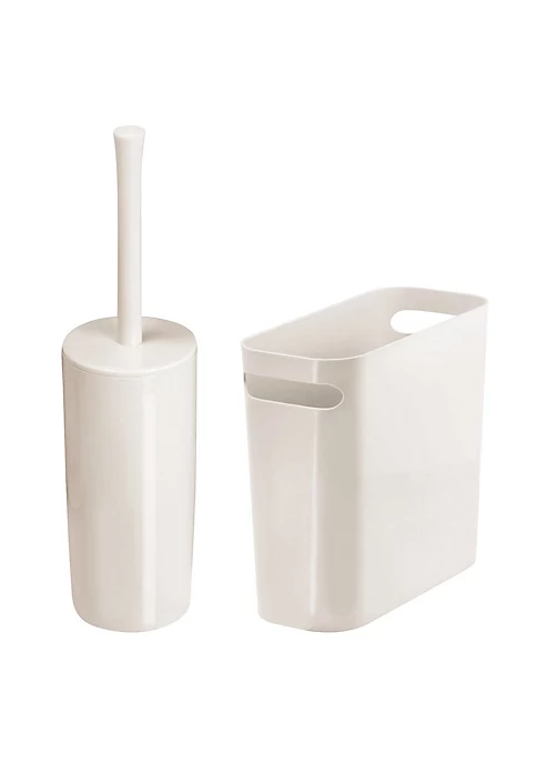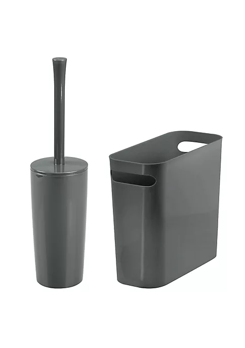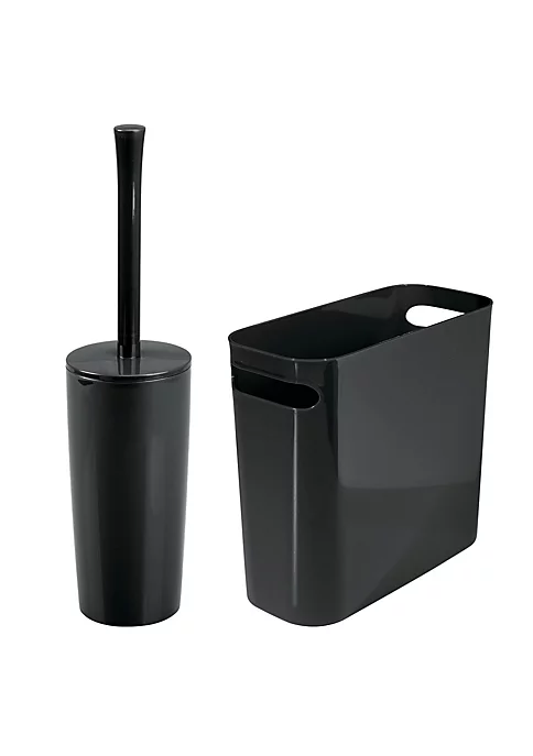 2 Piece Set: Includes one toilet bowl brush and one matching slim rectangular waste can.