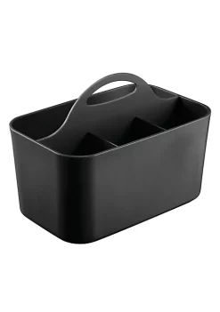 Functional Storage: Self-contained bowl brush with splash shield; Rectangular waste can has built-in handles.