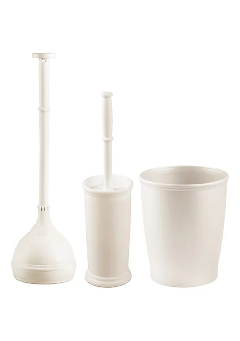 3 PIECE SET: Includes 1 toilet bowl plunger, 1 toilet bowl brush, and 1 small round trash can.