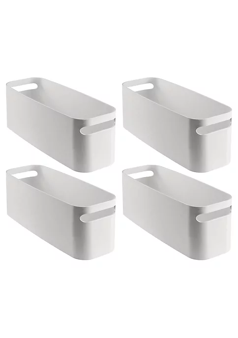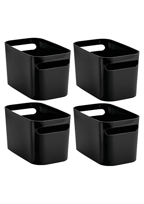 STYLISH STORAGE: Keep bathroom clutter under control by keeping bath and beauty products organized; Perfect for extra supplies of bathroom basics.PORTABLE: Built-in, easy-grip side handles make it easy to carry from shelf to counter top or vanity.FUNCTIONAL & VERSATILE: Convenient storage containers are perfect in multiple rooms throughout the home – try them in bedrooms, laundry rooms, utility rooms, kitchens, craft rooms, garage and more.QUALITY CONSTRUCTION: Made of durable shatter-resistant plastic.EASY CARE: Clean with mild soap and water; Do not place in dishwasher.THOUGHTFULLY SIZED: Tapered design; Inside bottom 9.1″ x 5.1;” Overall outer dimensions 10″ x 6″ x 6″ high.