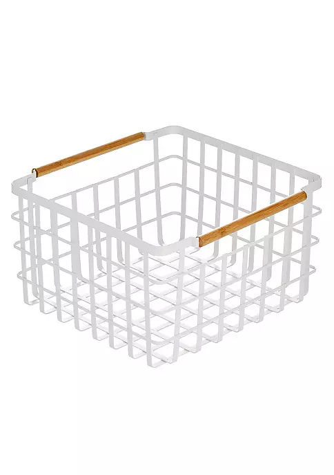 Best Sale 🎁 MDesign Wire Basket with Bamboo Handles 14″ x 14″ x 8″ 🎁