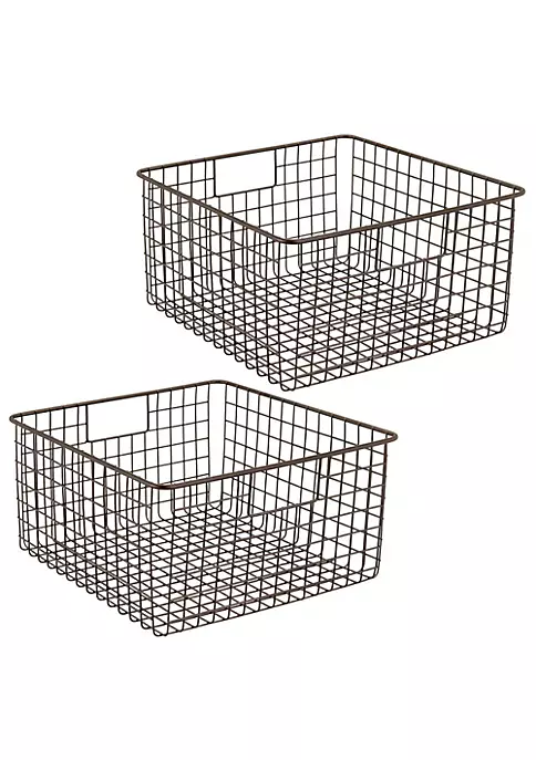 INSTANT ORGANIZATION: This bin keeps kitchen clutter under control by storing all of your essentialsPORTABLE: Built-in side handles let you transport from shelf, out of cabinets or wherever you store themFUNCTIONAL & VERSATILE: The perfect solution for organizing a multitude of household itemsQUALITY CONSTRUCTION: Made of strong steel wire with a durable finishEASY CARE: Clean with damp cloth; Do not place in dishwasherTHOUGHTFULLY SIZED: Measures 12″ x 9″ x 6″ high