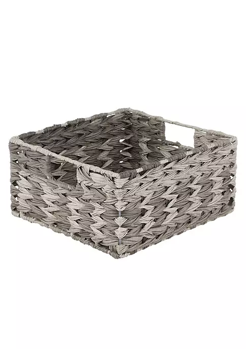 INSTANT ORGANIZATION: Keep home clutter under control by storing all of your essentials.VERSATILE & FUNCTIONAL: Use multiples as a stackable set or separately for coordinated storage throughout a room.PORTABLE: Features integrated easy-carry handles that make it easy to transport goods from pantry to shelf to table.QUALITY CONSTRUCTION: Woven from plastic strips over a steel frame.EASY CARE: Clean with a damp cloth.THOUGHTFULLY SIZED: Measures 12″ x 13″ x 6″ high.