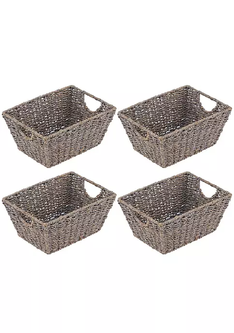Made of natural hyacinth in a woven pattern over a steel frame.