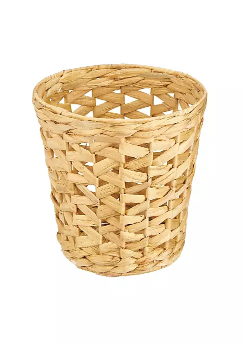ENHANCE YOUR DECOR: This woven trash can makes a statement with its stylish round shape.